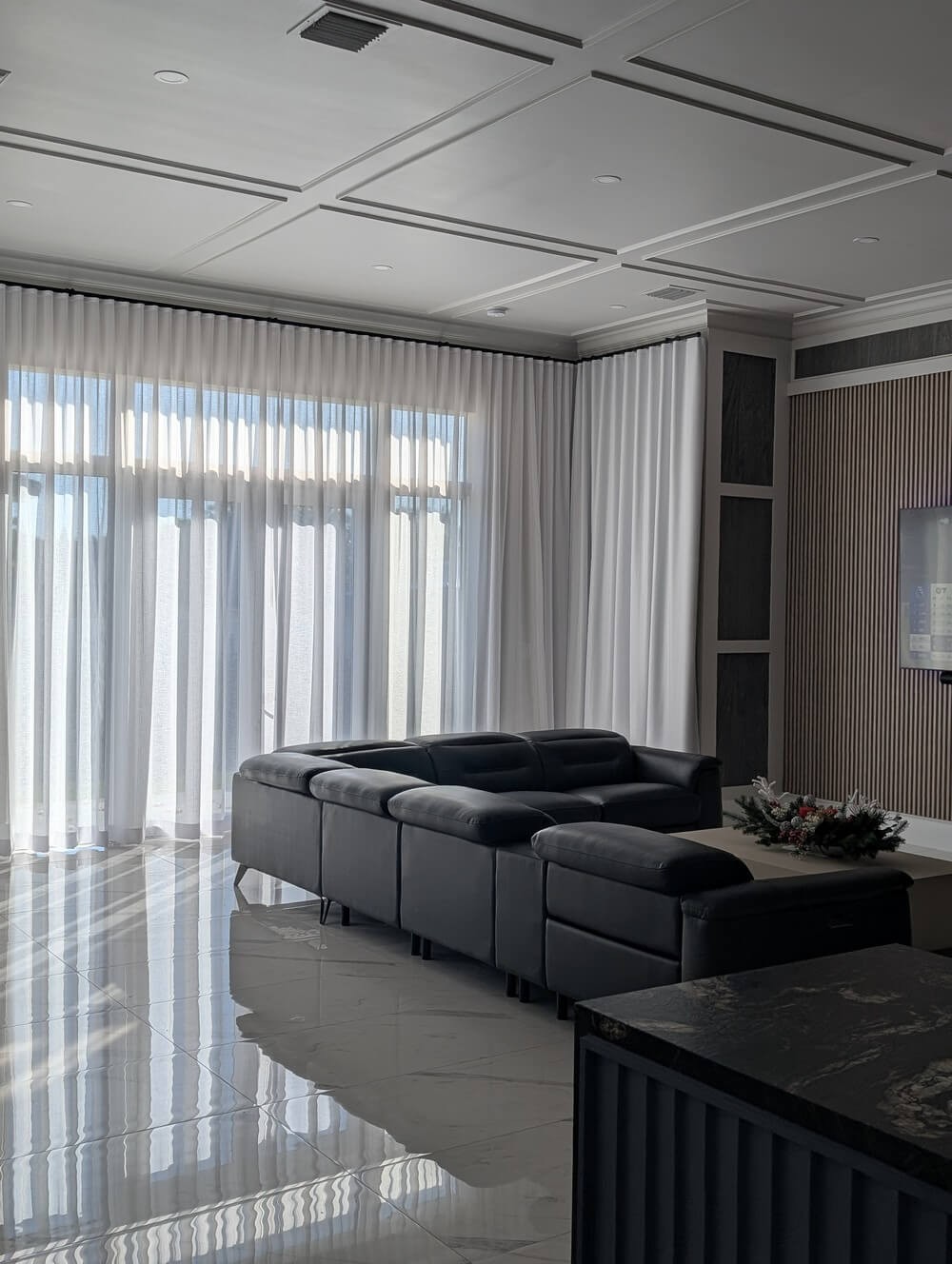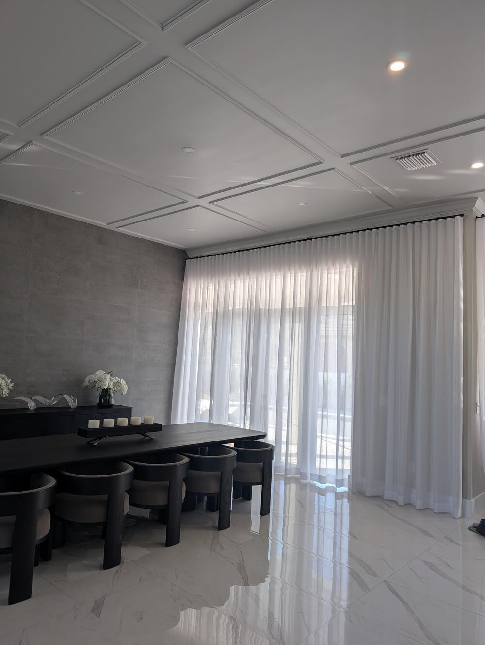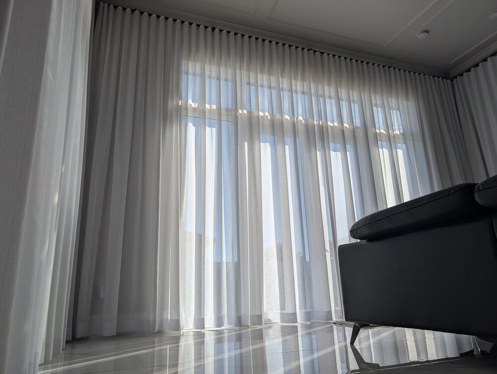 In this project, we paired the drapes with a black matte decorative rod which adds a bold architectural accent, striking the perfect balance between minimalism and high-end design. The manual baton draw operation ensures smooth, effortless control—no cords, no complications—just simple, reliable elegance.